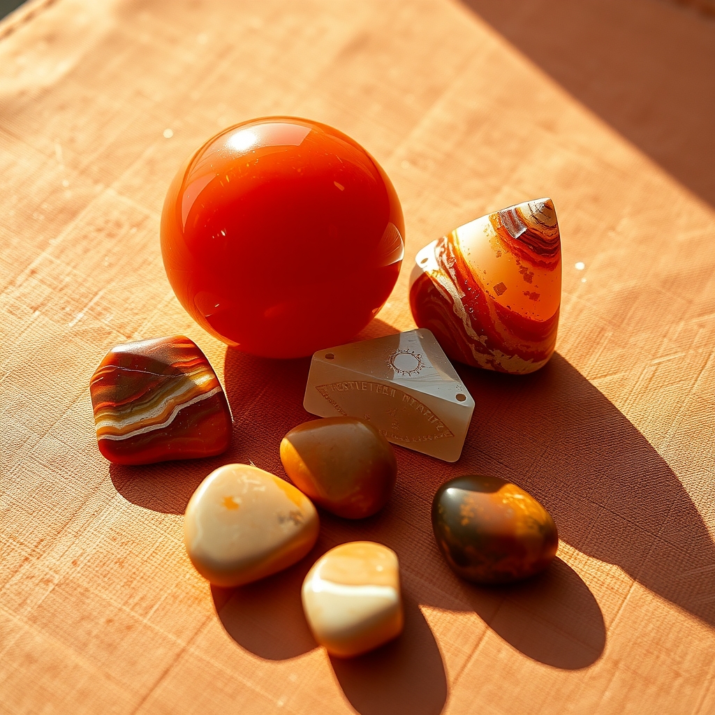 Hold the carnelian over your lower abdomen at the sacral chakra. Breathe deeply and visualize warm orange light radiating from the stone, filling your creative center with vibrant energy. Feel inspiration and passion awakening within you.