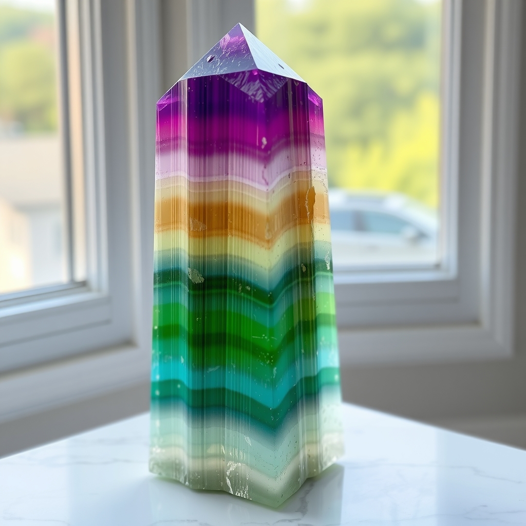 Sit at a desk and place the fluorite before you. Gaze softly at its colors while breathing steadily. Feel your mind sharpening and mental fog dissolving. Visualize your thoughts organizing like a clear, flowing stream.